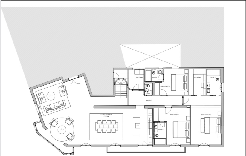 Una escalera de diseño conecta con la planta superior, que dispone de saloncito, sauna, baño completo y acceso directo a la terraza.